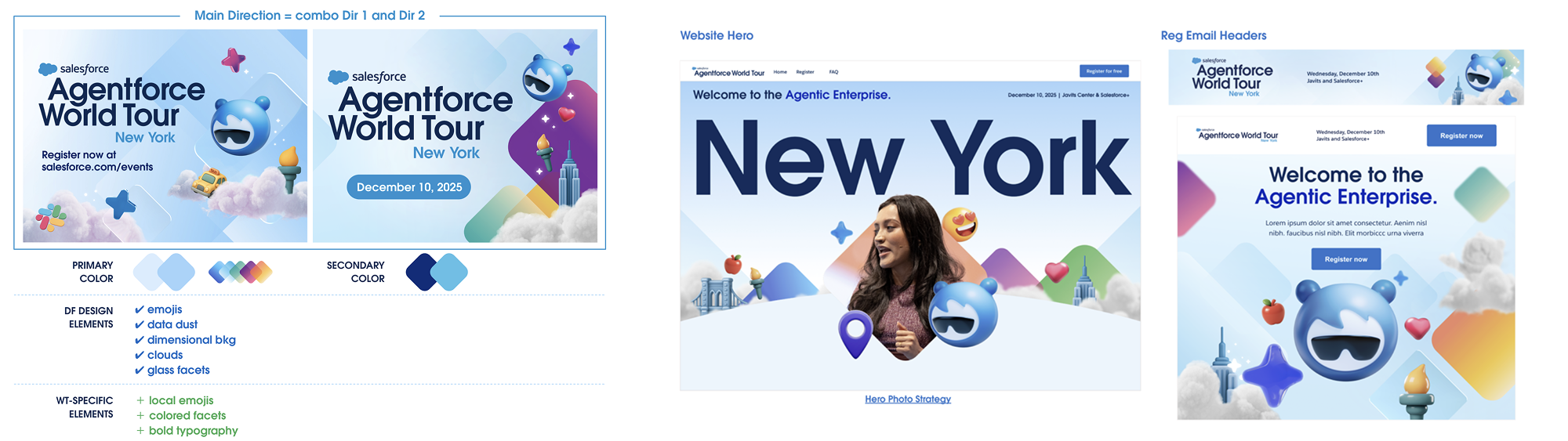 As a Senior Designer on Salesforce’s Events team, I helped execute designs and support the team for Dreamforce 2025 across both digital and print, and shaped the visual experience and brand identity for global World Tour events. This work involved exploring new visual directions with my design leaders, presenting concepts to leadership, building scalable design systems, and executing across large-scale deliverables.